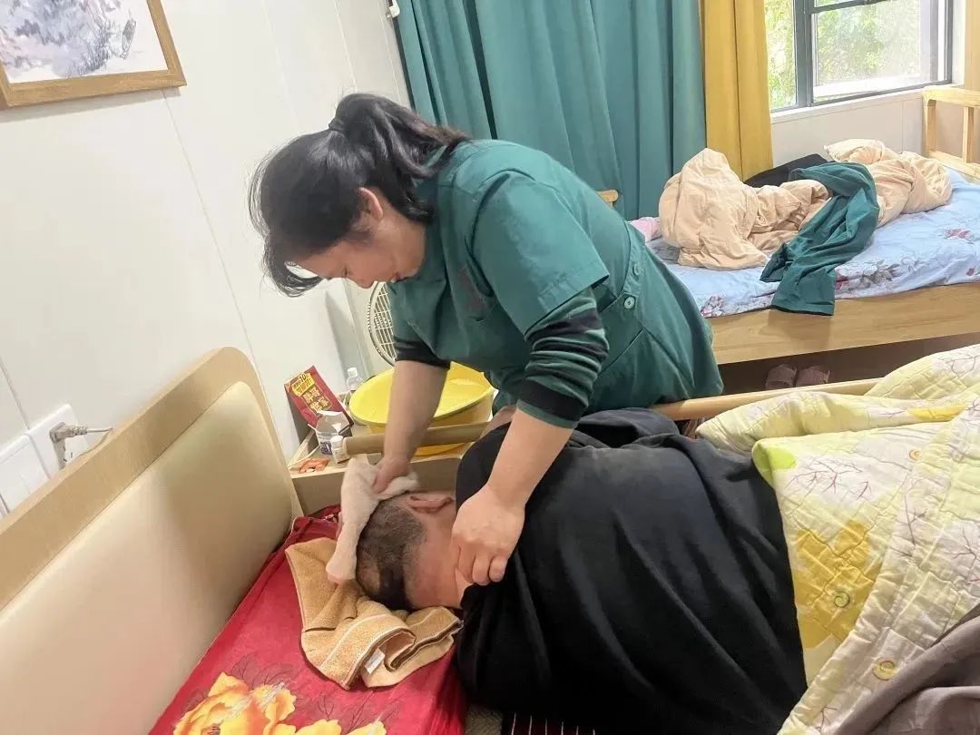 長期臥床的田叔叔敏感細膩,經(jīng)常感懷自己命運多舛,護理員為了開解他,從自己家拿來鮮花,放在他的窗臺,讓他心情愉悅。為了減輕他關(guān)節(jié)僵硬防止壓瘡,護理員們細致的給他翻身、保持皮膚潔凈減少刺激,醫(yī)生每日到房間查體、調(diào)整用藥和飲食。得知田叔叔想吃臘肉,護理員從自己家里蒸好土臘肉帶給他吃…